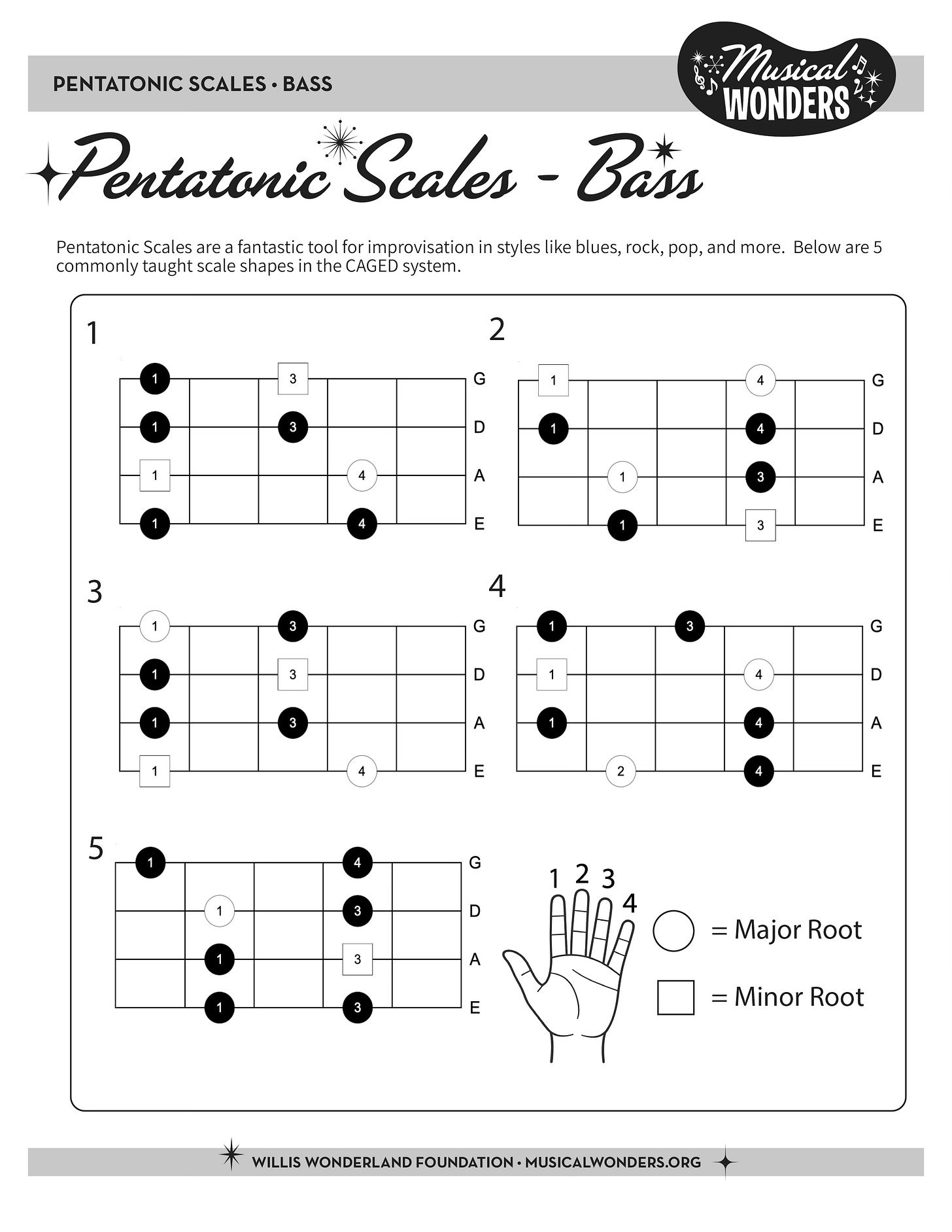 Winds/Keyboard/Classical Strings Sheet includes note names and a handy transposition key, so everyone from clarinet players to piano students can jump into pentatonic improvisation without missing a beat.